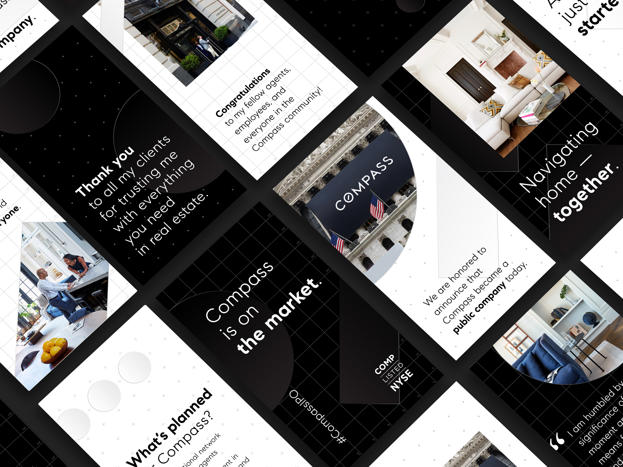 Compass is a real estate technology company with a powerful end-to-end platform that supports the entire buying and selling workflow. After a successful launch in 2012, Compass saw exponential growth that led to the company going public on the New York Stock Exchange in 2021. To help prepare for the launch, I worked alongside a small team to create an entire campaign, including social assets, anthem videos, AR filters, OOH takeovers, and an online experience platform that housed everything for agents and employees to leverage.